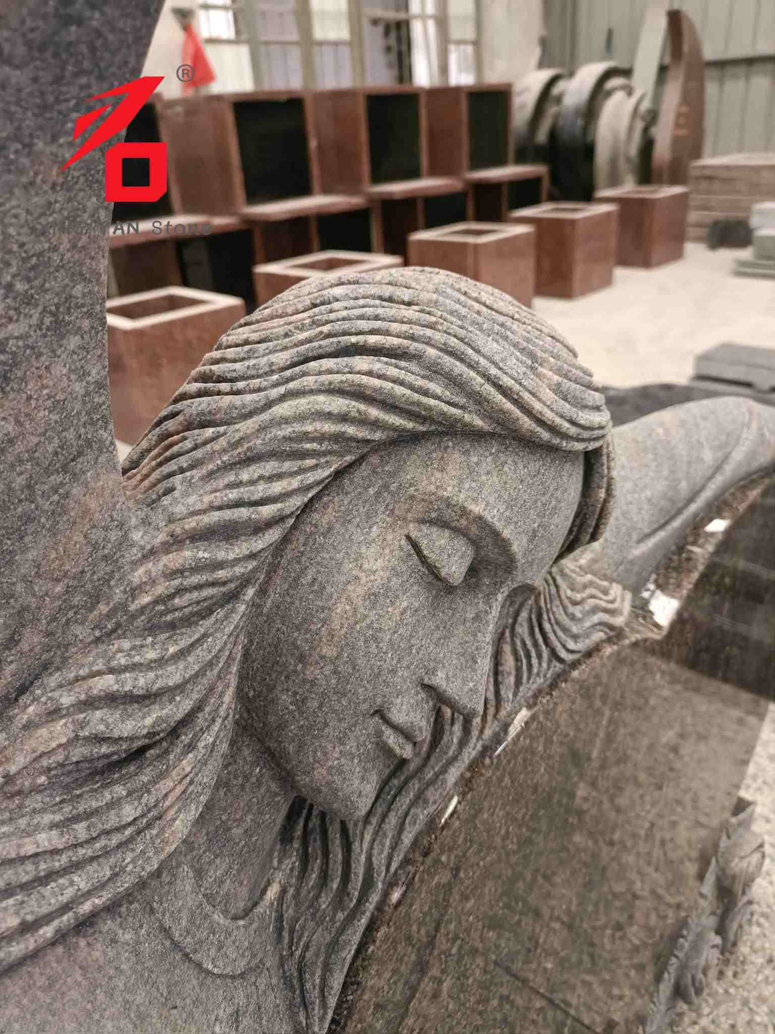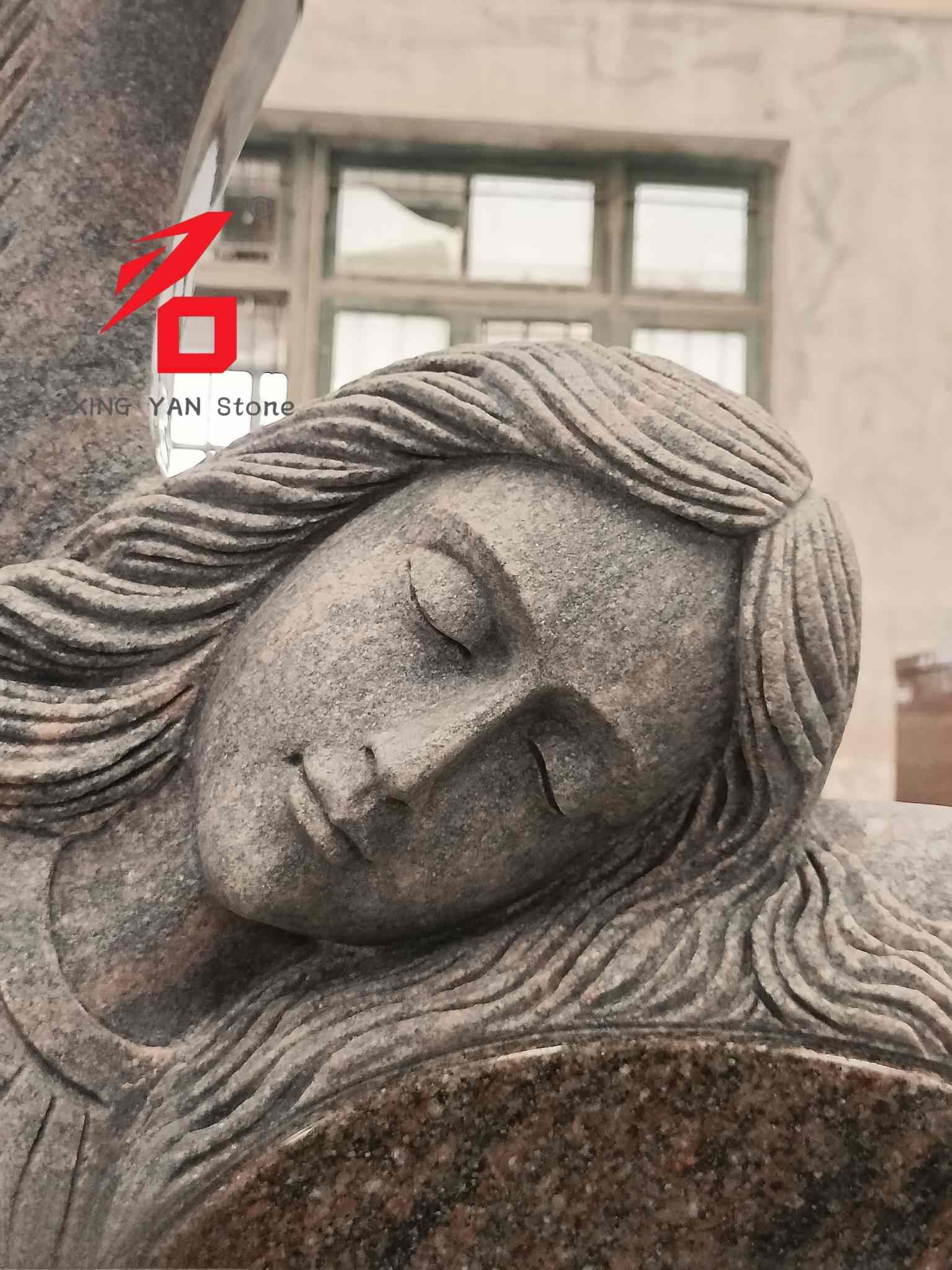 Ceardaíocht: Agus úsáid á baint as lámh iomlán 立体雕刻工艺, tá uigeachtaí cleite an aingeal, snáitheanna gruaige, comhrianta croí-chruthach, agus patrúin bun-rós snoite go cúramach. The stone joints are seamlessly joined with precise craftsmanship, creating a highly dimensional and visually striking overall form with outstanding artistic appeal.