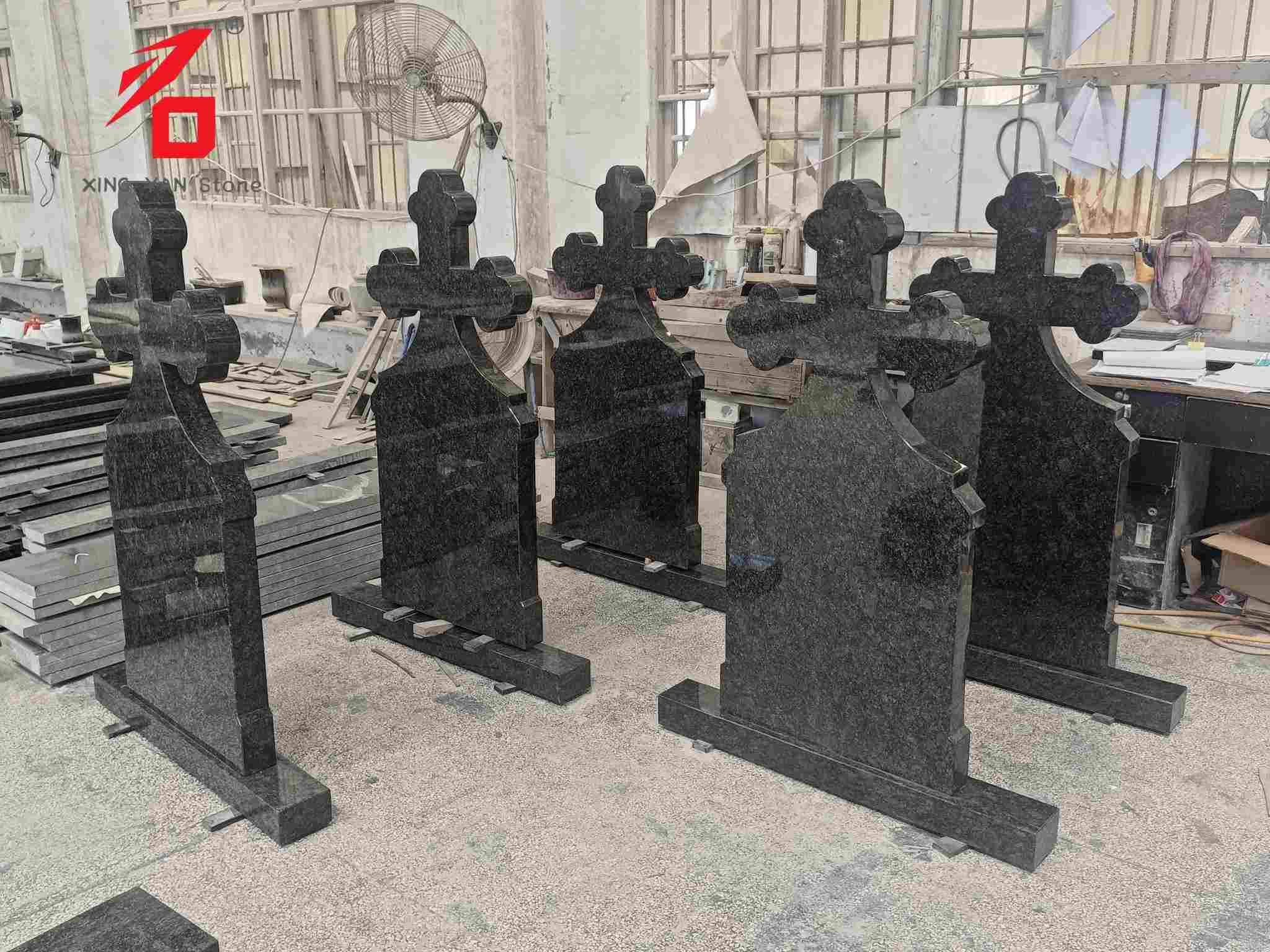 Ábhar: Roghnaítear eibhir dubh ard-dlúis, a bhfuil airíonna dlúth agus crua cloiche, resistant aimsir agus creimeadh-resistant. Déantar cóireáil snasta fíneáil ar an dromchla, ag tairiscint uigeacht ard snasta agus aonfhoirmeach. Deartha do shocrúchán fadtéarmach lasmuigh, cuireann sé i gcoinne fading agus dífhoirmiúchán, ag cinntiú marthanacht agus sláine amhairc na cloiche uaighe.